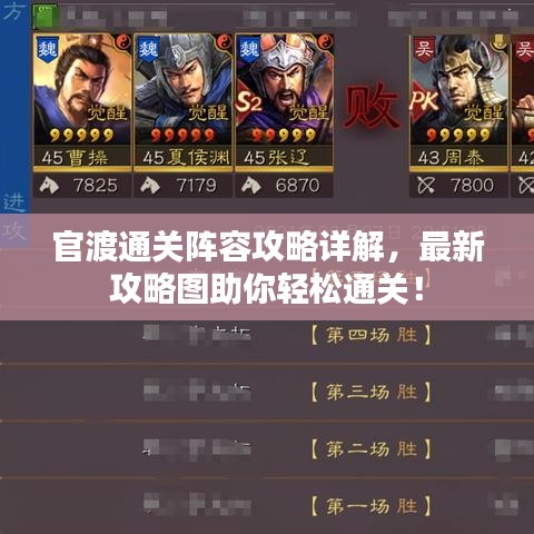 随着游戏版本的更新,官渡之战成为了众多玩家热衷挑战的一大关卡,为了助您在官渡之战中取得更好的成绩,本文将为您带来最新的通关阵容攻略图及详细解析。