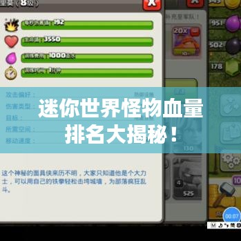 迷你世界中的怪物血量排名是根据怪物的种类、等级和属性而定的,了解怪物血量排名对于玩家来说非常重要,可以帮助玩家更好地制定战斗策略,在游戏中,玩家需要根据怪物的血量来选择合适的战斗方式,提高自己的游戏技巧和胜率,希望本文能够对迷你世界玩家有所帮助。